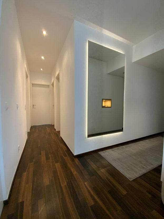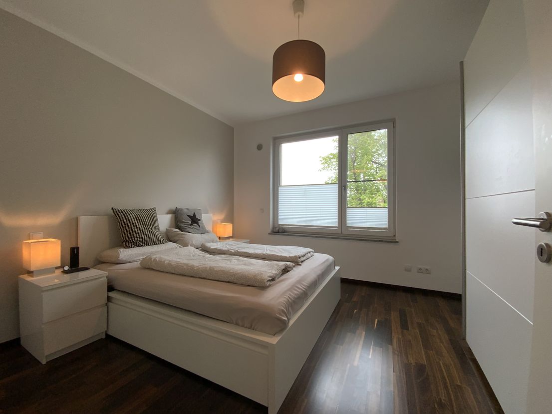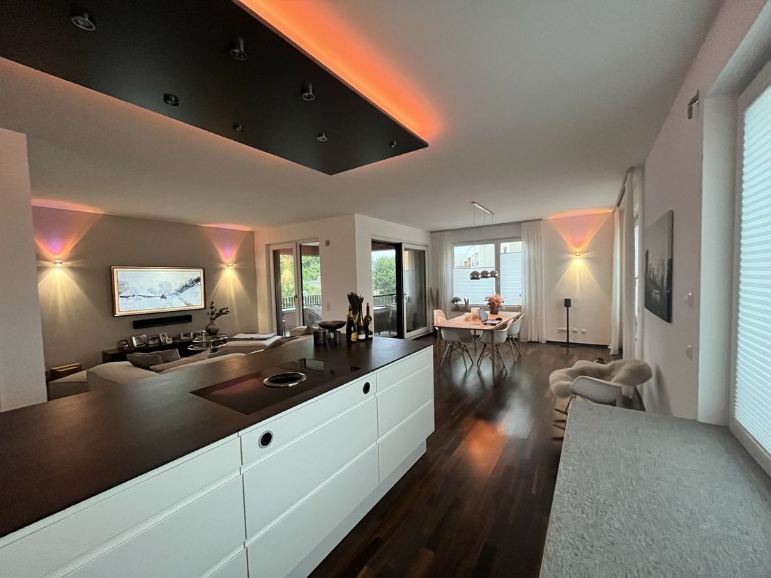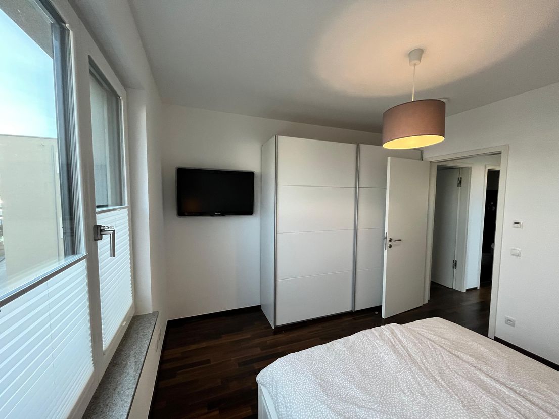 The "Am Provinopark" residential complex was newly developed in 2013 in Augsburg's traditional textile district. It is centrally located with good infrastructure and boasts beautiful green spaces. The meticulously landscaped park surrounding the apartments features mature trees. The idyllic Schäfflerbach stream completes the attractive landscape architecture. Very close to the city center and surrounded by nature. The apartment itself is located in the second row along the Schäfflerbach stream. The open architecture on all sides offers views of both the romantic stream and the green courtyard. Living in the park and living by the water!