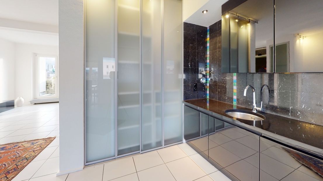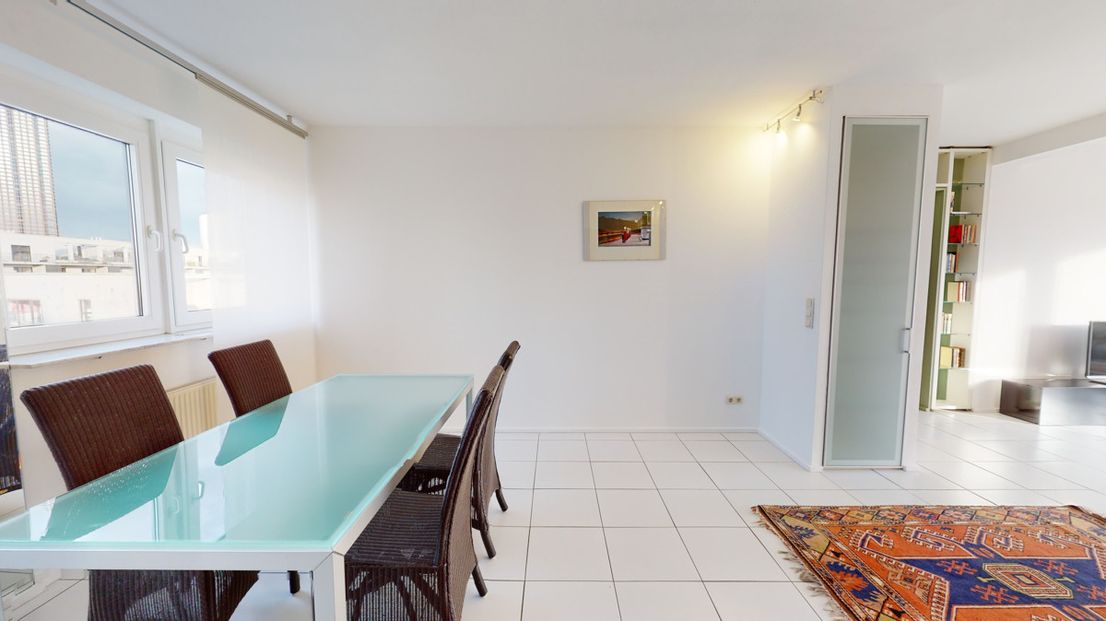 This light-filled, two-room penthouse apartment is located in a well-maintained apartment building in a sought-after residential area between Frankfurt's Gallus and Europaviertel districts. The apartment impresses with its spaciousness and tasteful furnishings. It features a modern fitted kitchen and a southwest-facing terrace, perfect for relaxing and enjoying the warm weather. The apartment is furnished and has recently undergone extensive renovations. The stylish marble bathroom with a bathtub and shower, along with ample built-in wardrobes, is another highlight. Excellent transport links to Frankfurt city center – the Galluswarte S-Bahn station and the A1 motorway interchange – complete this attractive offer. This property is ideally suited for singles or couples. Welcome to your new home!